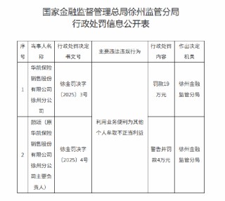 华凯保险徐州分公司被罚19万元:利用业务便利为其他个人牟取不正当利益