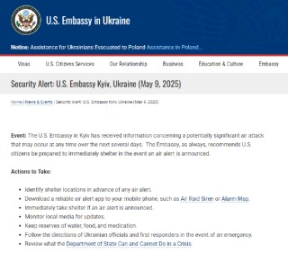 美国驻基辅大使馆警告 未来几天随时可能发生“重大”空袭