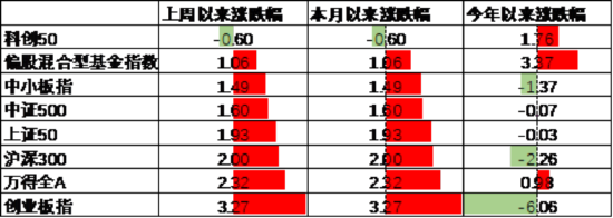 A股表现来看,上周主要板块有所上行,其中创业板涨3.27%,涨幅最大;科创50跌0.60%,跌幅最大。国内出口数据表现较好背景下A股有所回升。偏股基金指数涨1.06%。