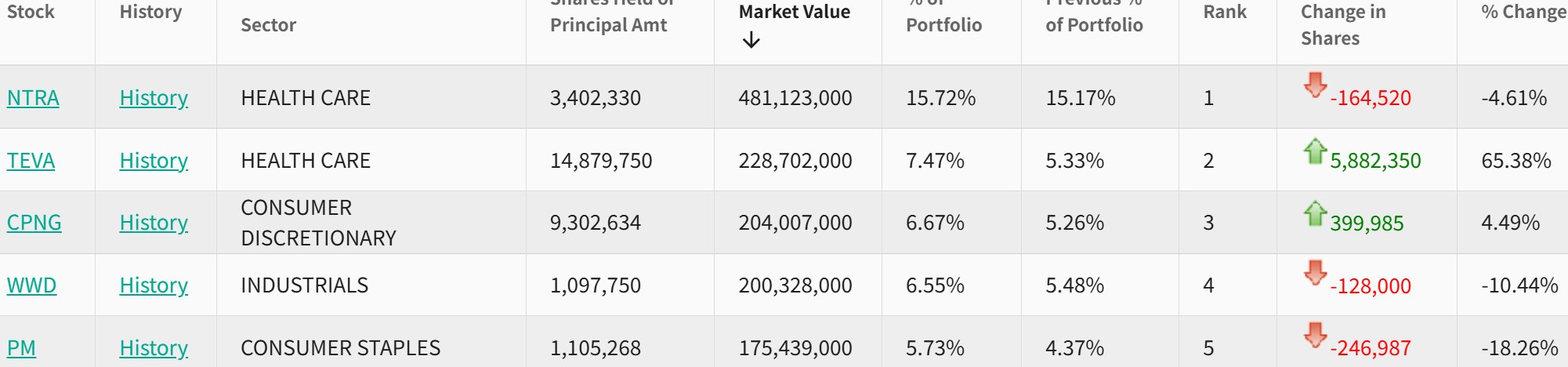 梯瓦制药(TEVA.US)位列第二,持仓1488万股,持仓市值约2.29亿美元,占投资组合比例为5.33%,较上季度持仓数量增长65.38%。