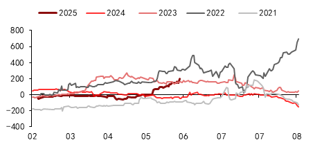 关税缓和半个多月后,终端订单迎来部分补发,但由于抢出口时间窗口有限以及终端厂家分化较大,总体来看近期下单量并未能弥补前期损失量,需求恢复不及关税缓和后的预期。这导致下游化纤利润仍然偏低,减产持续,6月的去库幅度或有明显下降。后期结构上存在操作机会,可继续关注9-1价差的回落时点节奏。