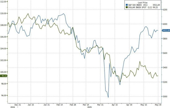 更令人担忧的是,汇率因素正成为日益重要的变量。数据显示,标普500与德国DAX指数在绝对回报方面的差距约为20%,但在汇率调整后,这一差距扩大至约30%。多年来首次,美元敞口正成为阻力而非助力。这一变化背后是美国30年期国债收益率逼近5%,穆迪下调美国信用评级,长期国债拍卖表现疲软(投标倍数创2012年来新低),以及外国投资者对美国长期债券需求的明显下降。