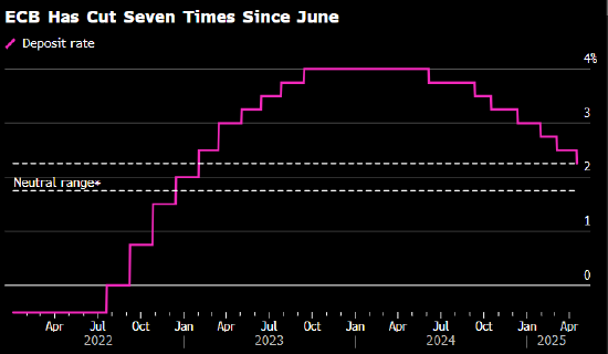 由于预计美国关税将对经济造成持久损害,欧洲央行官员正准备进一步下调利率。